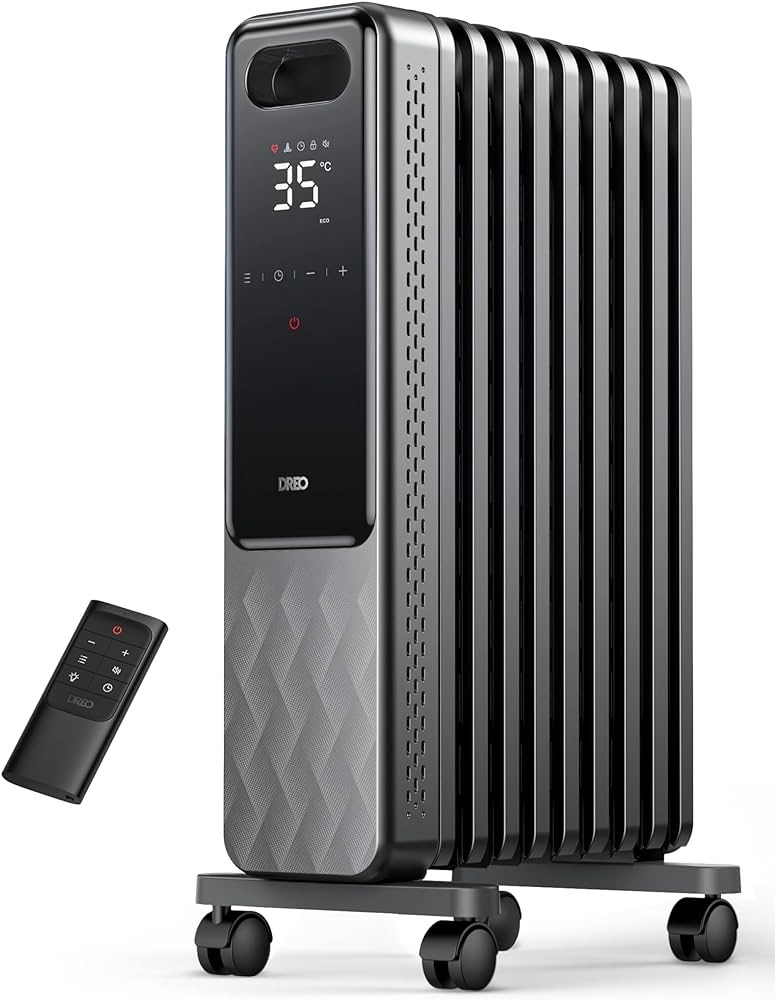 🛍️Product: Dreo Oil Filled Radiator 2000W,Electric Portable Space Oil Heater 9 Fins With Remote Control,24h Timer,3 Heat Settings,4 Modes,Digital Thermostat,Overheat & Tip-Over Protection,Quiet,Home,Grey